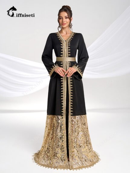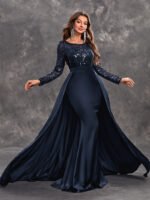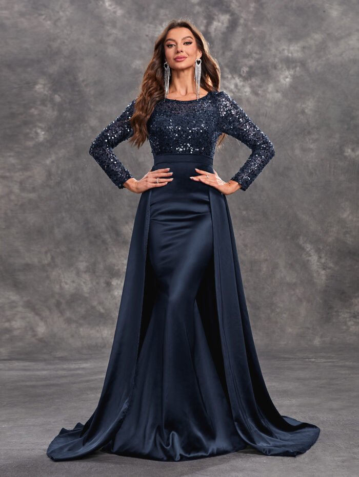 Giffniseti Wholesale Sequin Prom Dresses – New Hot-selling Women’s Prom Evening Dress Sequin Long Sleeve Round Neck Sexy Elegant Black Gown-SSW5205