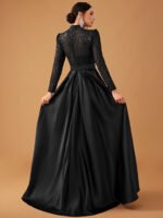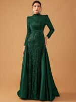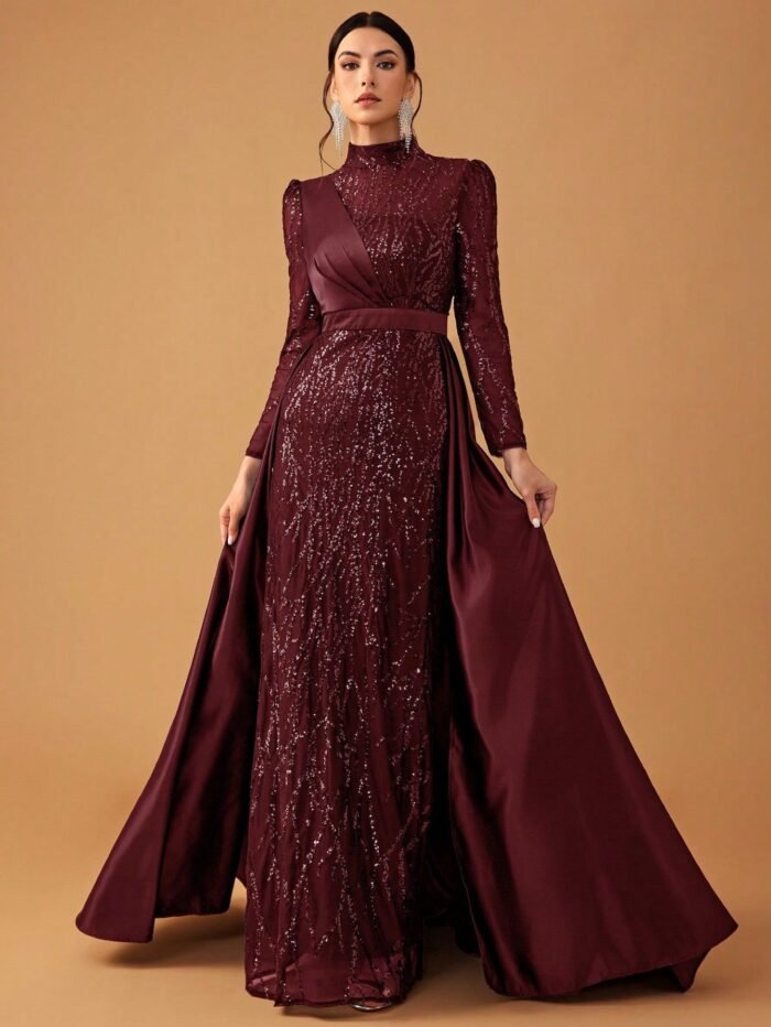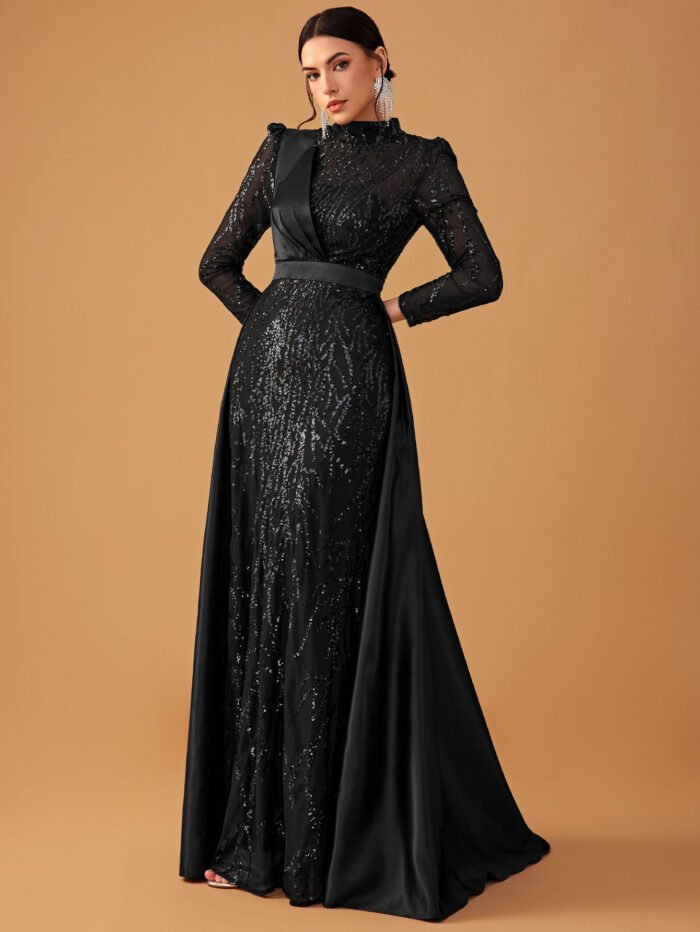 Giffniseti Wholesale Sequin Prom Dresses – Women’s Prom Evening Gown Elegant Luxury Sequin & Satin High Neck Long Sleeve Cape Party Dress-SSL6221